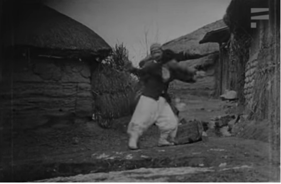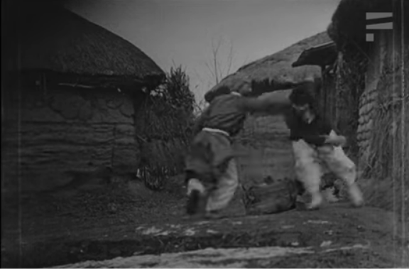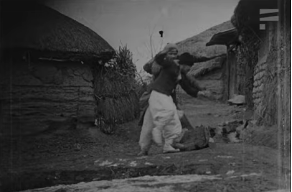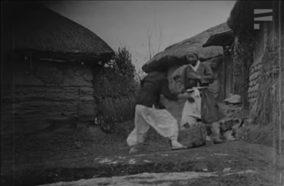 이 영상은 이규설 감독이 촬영한 1920년대 것으로 일제가 지원을 해서 제작 되었던 교육영화, 조선인들을 계몽할 목적(일본 입장에서)의 현존 조선 최초 무성영화에 포함되어 있는것으로 실제 치고 받는것은 아니다.