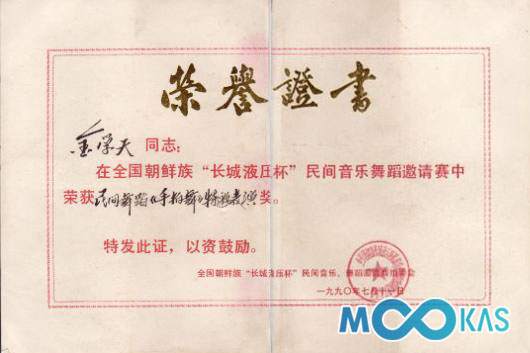 위는 1990년중국 단동에서 열린 문예콩쿨에서 ‘수박’의 갈래인 수박춤을 시연