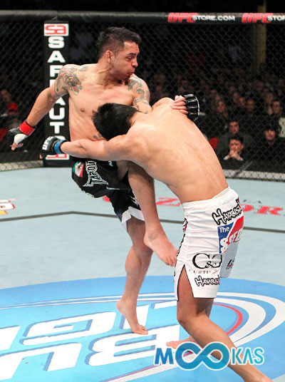 가르시아가 먼저 중심을 잃고 뒤로 쓰러지면서 정찬성에게 승부의 결정적 기회를 잡았다.