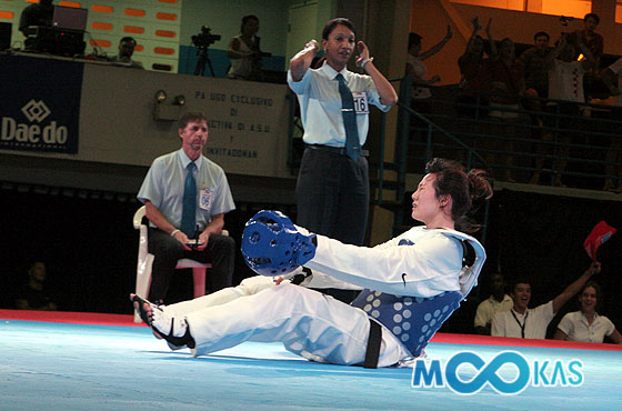 8강 상대는 C조 1위를 기록한 크로아티아. A급 선수들로 팀이 구성된 크로아티아를 상대로 한국은 초반부터 주도권을 빼앗겼다. 1회전 몸통 뒷차기를 허용해 2점을 내준 뒤 한 번도 역전하지 못하고 3대5로 경기를 마쳤다.