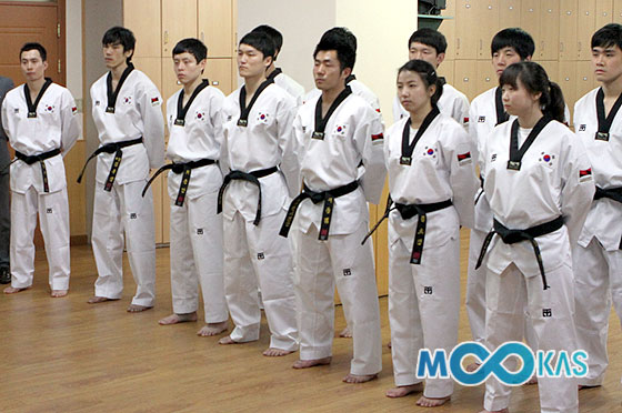 국기원이 지난 10일 국기원 제2강의실에서 중동에 파견되는 시범단의 결단식을 하고 있다.