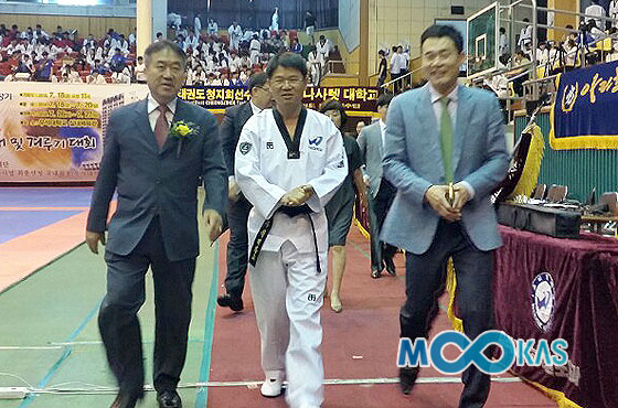 대학총장이 태권도복을 입고 등장해 많은 이들을 놀라게 했다.