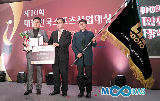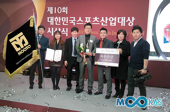 26일 서울 삼성동 국제무역센터에서 문화체육관광부(장관 김동덕)가 주최한 ‘제10회 대한민국스포츠산업대상 시상식’에서 종주국을 대표하는 태권도․무술 용품을 제조해 세계 시장에 유통하고 있는 무토(MOOTO)와 글로벌 무술문화 채널 무카스(MOOKAS)를 운영하고 있는 (주)컬처메이커(대표이사 이승환)가 최우수상과 국무총리상을 수상했다.
