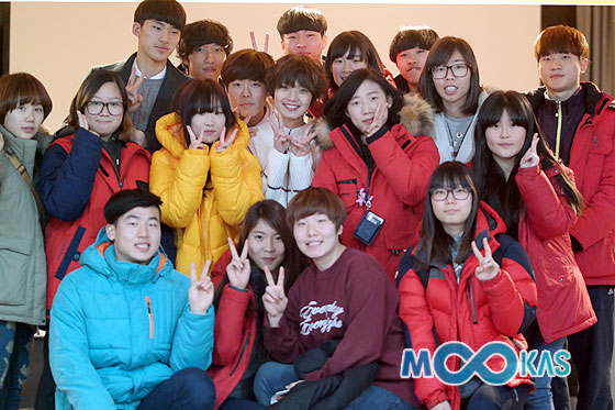 안영미가 특강을 마친후 학생들과 기념촬영을 하고 있다.