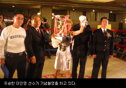 경기 초반 김주희 선수를 응원하는 함성과 열기 빠른 스피드에 의한 공세에도 밀리지 않았던 뚝심있는 이인영 선수의 정확한 펀치의 결과였다.경기가 끝나고 제일 먼저 달려나가 포옹한 큰언니 이영자(47)씨는 심성이 고운 동생이 경기 초반 상대진영의 열기 띤 응원과 적극적인 공격에 무너질까 염려했지만 뚝심있는 이인영선수가 잘 해내리라 믿었다는 소감을 털어 놓았다.권투가 재미있다. 라고 말하는 이인영 선수의 하루 훈련시간은 6시간 , 트레이너는 이인영선수에 대해서 단점이 없는 체력과 기술 모두 뛰어난 선수라고 극찬했다.이인영 선수의 희망은 권투를 더 열심히 해 세계 무대에 도전하는 것이며 운동시간이 재미있다며 밝게 웃었다.
