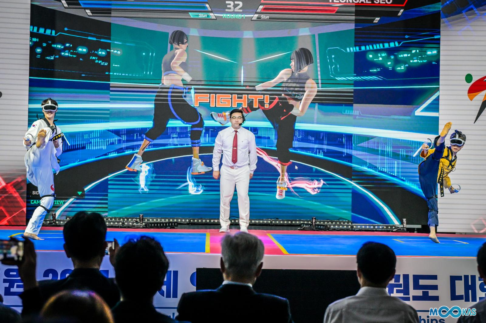 태권도의날을 맞아 무주 태권도원에서 가상스포츠 버추얼태권도 경기가 첫 국제대회로 막이 올랐다.
