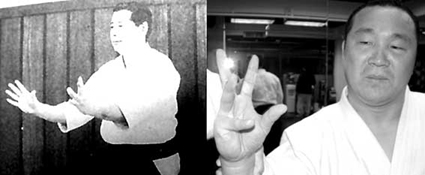 손가락자체를 일부러 꽃모양으로 만들고 하는가 어떤가는 그다지 중요한 문제는 아닌 듯 합니다. 다이토류의 기본 아이키테의 형태에 따라 자연스럽게 그런 꽃모양과 같은 형태가 나올 뿐입니다. 손의 형태나 모양이 아니라 상대와 나와의 중심 밸런스가 연결된 전체적인 몸자세이죠. 정말로 중요한 건 잊고있는 처사인 듯 보입니다.