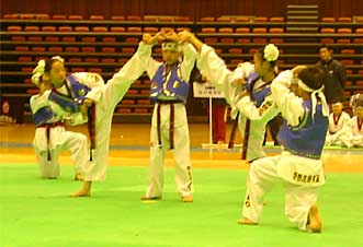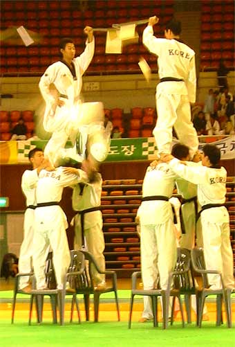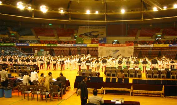 지난 15일(토) 대한태권도협회 주최로 시도협회 및 중앙협회의 추천을 받은 전국 우수도장들이 올림픽 제2체육관에 모여 품새, 시범 등 다채로운 경연을 벌였다. 대한태권도협회에서 태권도 도장 활성화와 교육내용의 발전을 위해 새롭게 창설한 이번 "2003년 전국우수도장 경연대회"는 전국의 우수도장들이 그동안 갈고 닦은 태권도 기술과 창의력을 시연함으로써 진정한 명문도장을 선발하고자 개최하게 되었다.