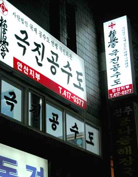 간판에 "당수술 대산 6단 도장(唐手術 大山 六段 道場)으로 되어 있더군요.