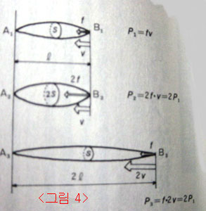 근육은 두께(횡단면적S)에 비례한 크기의 수축력 f를 낸다. 또한, 그 수축 속도 v는 자신의 자연스러운 길이 l에 비례한다(그림4). 한쪽 끝(A1,A2,A3)을 고정시켜놓고 생각해보면 이해하기 쉬운데, 다른 한쪽 끝(B1,B2,B3)에서 부착한 뼈를 끌며 일을 한다. 근육이 내는 파워 P는, 파워=수축력X수축속도(P=fXv=fv)이다. 전술했던 것처럼 수축력 f는 횡단면적 S에, 수축 속도 v는 자연스러운 길이 l에 비례하기 때문에 앞의 공식에 의해 P=fv∝Sl=횡단면적X길이∝육체의 체적이 된다.