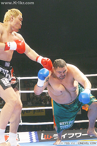 아케보노는 K-1으로 와서 아주 처참하게 무너졌다. 대부분 한 대도 때리지 못하고 판정패했고, 재수가 없으면 그 큰 덩치가 속절없이 링바닥에 쓰러지면 KO패했다(이럴때 시청률이 더 높고, 동영상은 난리가 난다). 2005년 3월 월드그랑프리 서울 대회를 앞두고 기자회견에서 아케보노에게 물었다. “왜 K-1을 하느냐? MMA가 더 낫지 않느냐?”고. 그랬더니 “나도 그러고 싶다. 지금은 계약 때문에 안 된다”는 답이 나왔다. 이 대회에서 최홍만에게 패한 아케보노를 경기장 뒤편에서 우연히 볼 수 있었다. 지고도 실실 웃고 다니길래 통역에게 이유가 무엇이냐고 물었더니 “오늘은 별로 안 맞고 져서 기분이 좋다”고 했다. 기가 찼다. FEG가 일본 스모의 탐탁치 않은 영웅을 K-1으로 데려와 완전히 망가뜨린 것이다. 왜 다카노하라 같은 일본인 요코즈나는 K-1으로 데려오지 않는가?