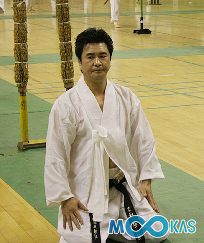한국해동명인배대회 중 베기 시범을 하려고 준비중인 나한일 총재