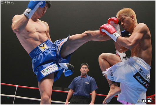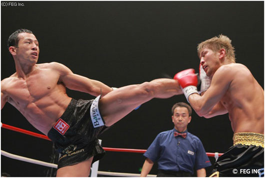 '되갚아 주마' 이수환이 경기 중 키도 야스히로에게 하이킥을 날리고 있다