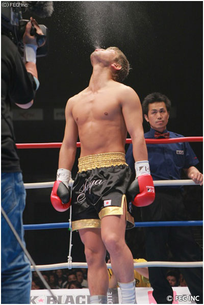 '내 모든걸 내뿜겠다' 경기에 앞서 물 세레머니를 펼치는 야마모토 유야
