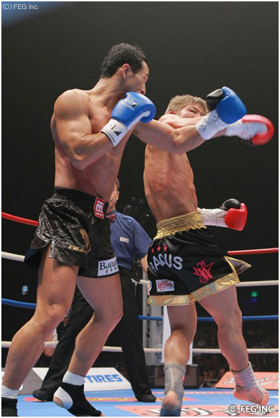 '조금 짧다' 이수환과 키도 야스히로가 펀치를 주고 받고 있다