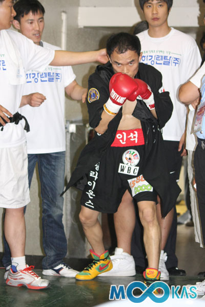 송인석은 19일 경기도 오산시민회관에서 열린 WBC인터내셔날 세계타이틀매치에 출전해 6라운드 53초 만에 KO패했다. 이날 송인석은 상대인 라차몽콜 코키에트짐에게 파워와 힘에서 밀리는 무기력한 모습을 보였다. 국내 랭킹 2위인 송인석이 인터내셔날 챔피언이었던 라차몽콜을 상대로 선전했지만 아직 ‘세계복싱의 벽’은 높았다. 비록 패했지만 열심히 싸운 송인석의 경기를 <무카스> 카메라에 담아봤다.