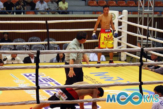 '라차몽콜 화이팅' 라차몽콜이 다운을 뺏자 환호하는 태국팬들