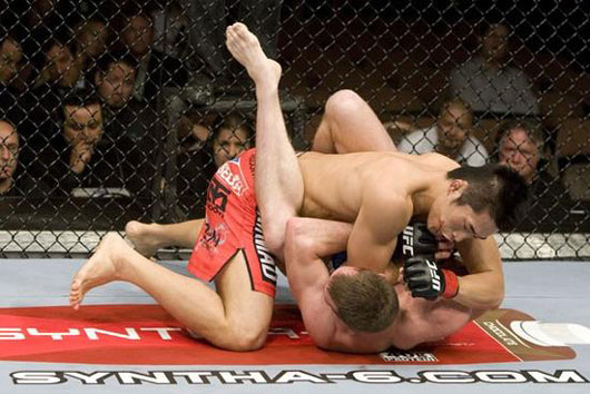 김동현이 테이크다운을 성공시킨 후 공격할 틈을 엿보고 있다
