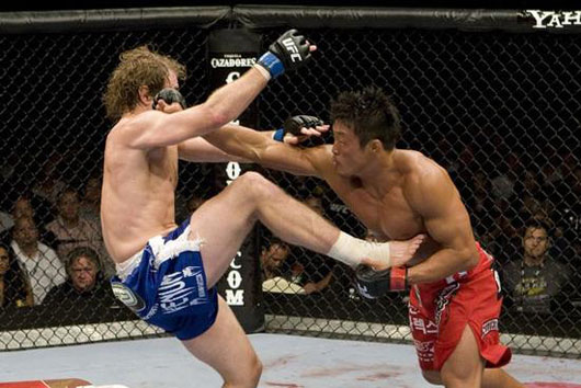 ‘풍운아’ 추성훈과 ‘스턴건’ 김동현이 지난 12일 미국 만달레이 베이 이벤트센터에서 열린 UFC100에 동반 출전, 나란히 승리를 기록했다. 승전보를 울린 두 선수의 공통점은 한국에서 유도를 했다는 점이다. 추성훈은 부산시청에서 유도선수로 활동했으며, 김동현은 유도명문 용인대학교에서 유도를 전공했다. 두 선수는 이번 UFC100에서 동반 승리를 거두며, 미국에 ‘한국유도가의 매운맛’을 제대로 보여줬다. 지금부터 라스베이거스에서 펼쳐진 두 선수의 활약상을 <무카스>를 통해 만나보자. -편집자 주-