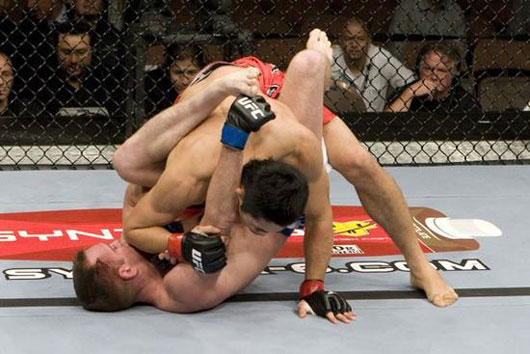 UFC100에서 김동현이 그랜트를 상대로 경기를 펼치고 있다