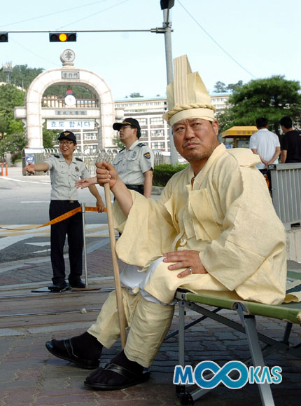 국기원 서문에서 8일째 상복을 입고 단식농정을 벌이고 있다.
